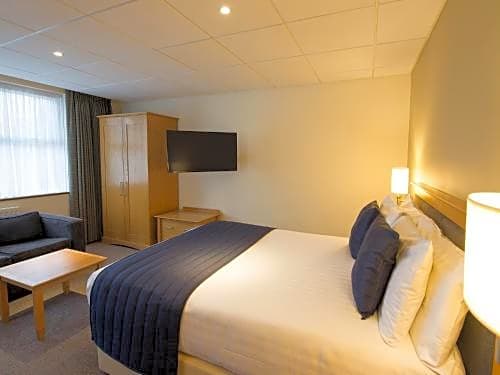 A bright bedroom with satellite TV, tea/coffee facilities and a private modern bathroom.